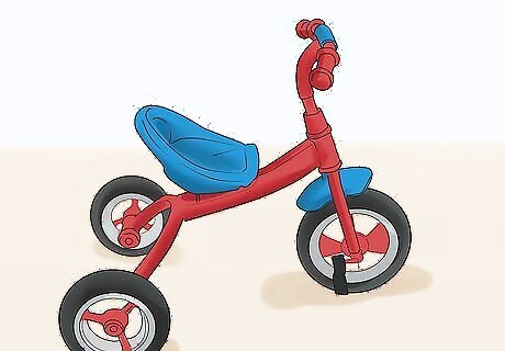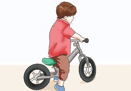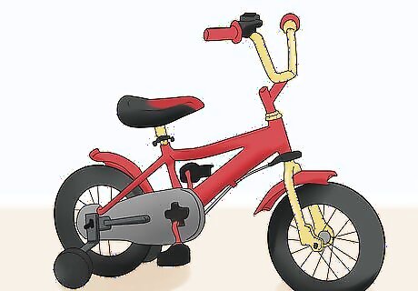 Consider a thick-wheeled tricycle or big wheel bike. Once they are ready for a real bike, you can add training wheels to this style. Training wheels should be attached next to the rear wheel and should start flush with the ground. As your child gets more comfortable balancing on the bike, you can raise the training wheels, which will force them to balance on their own. Often, toddlers that start with balance bikes can skip the training wheel phase or go through it quickly. Keep an eye on your child to monitor their progress and comfort levels.