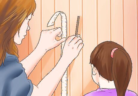 Mark their height on the wall. Place the ruler, book or other flat surface on your child’s head. The ruler should be positioned against the wall, parallel with the floor. Mark where the ruler touches the wall with a pencil.