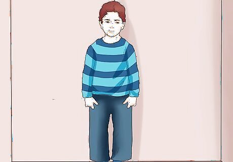 Have your child stand upright against a wall. Their head should be facing straight ahead, and not tilted upwards or downwards, so you do not get a faulty measurement of their height. Make sure their feet are side by side, with both feet firmly on the floor and their heels touching the wall. Allow your child to keep their shoes on, as they will be wearing them when they ride the bike.