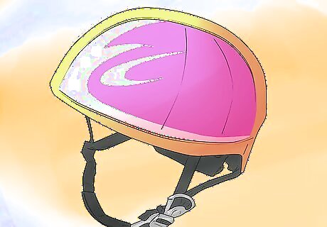Make sure you purchase a helmet for your child. Helmets are required by law in most states when riding in public places, and they are always a good idea for young children learning to ride a bike. Helmets also reduce the risk of bicycle-related head injury by 88%. A helmet is only effective if it fits your child’s head properly. The right helmet will rest just above your child’s eyebrows and sit level around their entire head. It shouldn’t move around on their head when shaken, and the strap should be snug but still allow your child room to move their mouth and talk. Helmets that are designed specifically for biking are best, but your child can also wear a helmet designed for another activity, like rollerblading or skateboarding, as long as it fits them properly.