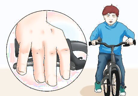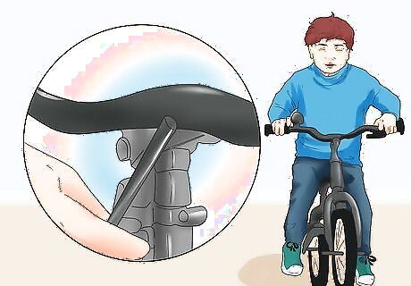 Lower the seat if your child cannot reach the pedals. To ride the bike easily and comfortably, your child’s knee will be slightly bent when the pedal is in the down position, as this allows a stronger stroke on the pedal than when their leg is stretched out. When the pedals are in the up position, your child’s thighs should be horizontal and not stick out.