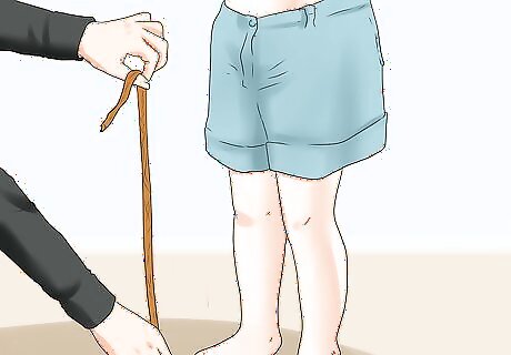 Use string if you do not have access to measuring tape. Place the string on the floor, between the child's feet, and stretch it to the child's crotch. Then, put your finger on the place on the string to indicate the height of their crotch. Move the string and cut with it with scissors at the place where your finger is. Measure the length of tape using a ruler. Keep in mind that toddlers with an inseam up to 18 inches and a height up to 40 inches need a bicycle with 12-inch wheels. Toddlers who have an inseam up to 18 inches and are taller than 40 inches need 16-inch wheels.