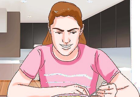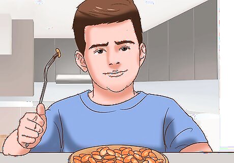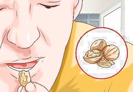Snack on nuts. Live fish and oatmeal, nuts are also rich in omega-3 fatty acids and other healthy fats. Healthy fats help you lose weight and have more energy. Nuts also have fiber in them, which will help your overall health. Try eating a handful of walnuts, pecans, macadamias, or almonds as a tasty, healthy snack. You can also add nuts to recipes, such as almond crusted fish or roasted walnuts with sauteed green beans.