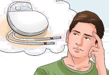 Consider getting a pacemaker. Doctors may implant a pacemaker, which is a tiny device that is implanted in your body that facilitates electrical impulses to the damaged node in the heart to help it pump more slowly. Nodes are the source of the electrical impulses that help the heart to pump blood. If the pacemaker feels an irregular heart rhythm, it emits an electrical impulse that stimulates your heart to beat correctly. Also ask about implantable cardioverter defibrillator (ICD). ICDs are very similar to a pacemaker except they help the ventricles, or lower portions, of you heart. They also emit electrical pulses to keep your heart at a correct rhythm when the normal rhythm falters.