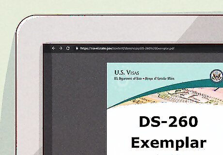 Fill out your Green Card application and submit it. Once your petition or sponsorship gets approved, you can fill out the Green Card application online through the USCIS site. Be sure to fill out all of the personal information on the form and answer each question honestly. Once you’re finished filling out the application entirely, ensure that everything is spelled correctly and the information is correct before clicking on the “Submit” button. Be sure to print out your confirmation screen or email so you have a record of completing the application. You can find an example of what to expect from the application here: https://travel.state.gov/content/dam/visas/DS-260%20Exemplar.pdf. The form will only be available once your petition goes through.