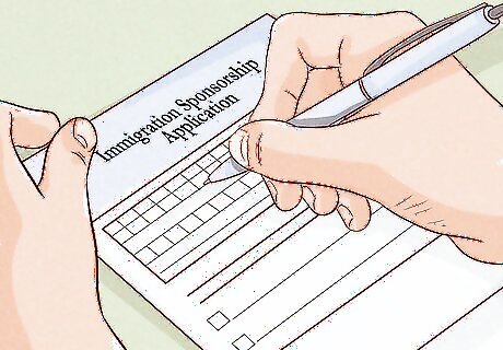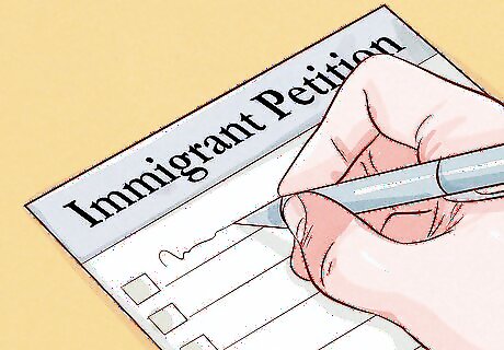 Ask a family member to fill out an immigrant petition for you if they’re a US citizen. The easiest way to get your Green Card for permanent residence is to have an immediate family member, such as a spouse, parent, or child, that’s a US citizen fill out the petition paperwork. Ask them to fill out the paperwork for you entirely and submit it to the United States Citizenship and Immigration Services (USCIS) by mail. The petition may take several months to go through and get approved by the USCIS. You may be able to also have a fiancé that’s a US citizen fill out the paperwork as well. There is also a filing fee of $535 USD as of July 2019 that you or the person who filled out the petition needs to pay in full before your petition can be considered. If you’re only looking to move to the US to attend school, you may be able to get a student visa instead.Tip: If you are relocating your family to the US, then you need to submit a petition for each member of your family.