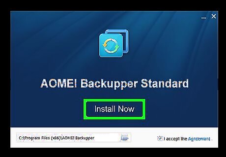 Click Install Now. It's the large blue button that appears when you launch the AOMEI Backupper Install File. This will install AOMEI Backupper.
