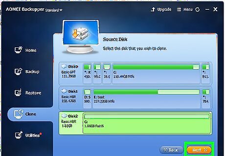Select the disk you want to clone and click Next. You will see a list of all recognizable hard drives. Select the one you want to clone and click the button that says "Next". It's the orange button in the lower-right corner of the app.