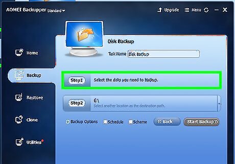 Click Step 1. Step 1 is to select a disk you want to backup.