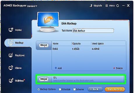 Select a destination for the image file (optional). By default, the image file will be saved to C:\. If you wish to select a different destination, click "Step 2" and select a destination for the backup image.