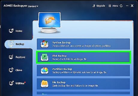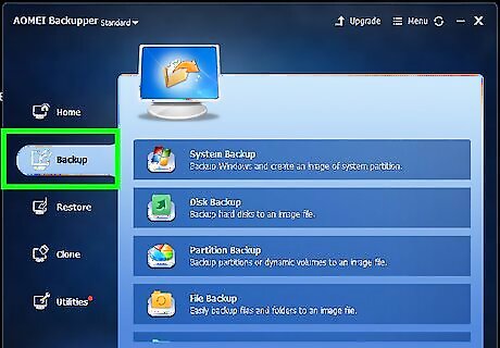 Click Backup. It's in the sidebar to the left of the AOMEI Backupper app.