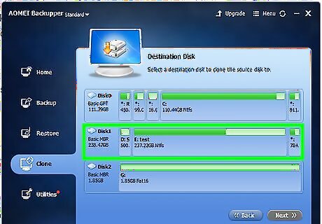 Select the new hard drive and click Next. If the new hard drive is properly installed, it should be recognized by AOMEI Backupper. Click it to select it, and click "Next" in the lower-right corner. If there is any data on the new hard drive, it will be erased.