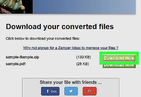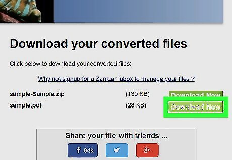 Download the converted PDF. Click the green Download Now button to the right of the PDF file. This file's name will be the email's subject (e.g., "hello") followed by ".pdf".