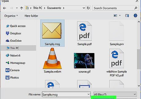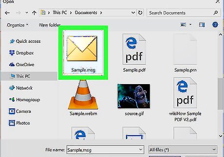 Select your MSG file. Go to the folder in which your MSG file is stored, then click once the MSG file to select it.