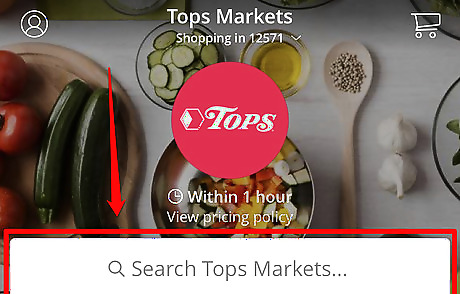 Search for your item. Tap the "Search (store name)" bar and type your item into the box. You will find this just below the store icon and/or "Shopping in (zipcode) and store name lines. Instacart gives you some common searches after you tap the search box, but you can be as vague or succinct as you want. Recognize what's not able to be ordered and delivered. Per Instacart's policy these things are unable to be ordered and delivered: live and feeder animals, furniture, non-alcoholic age restricted and over the counter items containing nicotine, items containing pseudoephedrine, ephedrine, phenylpropanolamine and dextromethorphan, holiday trees, currency, photos, lottery tickets, gift cards, weapons and weapon supplies, dry ice, hazmat chemicals, and helium tanks. Browse through the list on the store's page to view item options. Instacart allows you to bookmark items for later purchasing, if you want to.