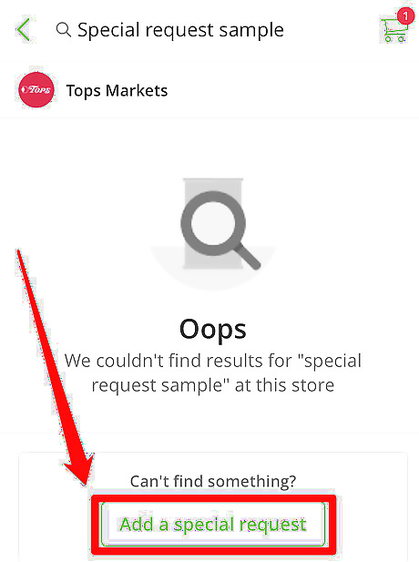 Add items that aren't in Instacart's database using the "Add a special request" button. Search for the item using any possible combination of search terms and if you can't find the item, scroll the page all the way up and tap the "Add a special request" button. Although commonly used for special items not currently available at delis, seafood bars, and butcher counters, special requests can come from anywhere in the store.
