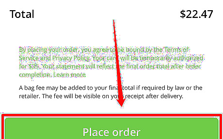 Peruse over the paragraph below the Total's line. It'll start with "By placing your order," and will continue with what you agree to in the legal pages of orders. It'll also mention the amount that Instacart will charge as a Temporary Authorization -generally about $10-15 more - which can help look for additional money in the event that you ask your shopper to buy more of the item or change the order. Instacart will give you the remainder back a short time after delivery has concluded - most given within a few hours.