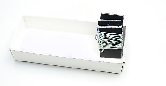 Remove the bobbin and store it in the plastic compartment. Tuck the loose end of thread into the other diagonal slit at the end of the bobbin. Then, place it into your storage compartment according to color or number. Wind as many skeins as you like.Variation: If you don't want to use a plastic compartment, get a metal binder ring and slide the threaded bobbins onto it.