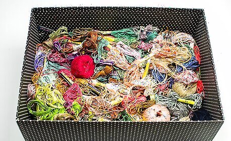 Separate the thread you want to keep into project piles. Once you've removed the thread that you know you don't want to keep, separate the thread you're going to save into a current project pile and a future project pile. If you have more than 1 cross stitch project going, make a pile for each. Having all of the thread you need for a project in 1 easy to access space saves you time.