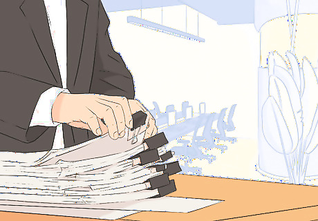 Use a “To File” basket. When new correspondence enters your office or when new paperwork is created, you may not be able to file it right away. You should place everything that needs to be filed in a single place to be filed when you are able. A basket on your desk, labeled “To File,” is a good way to set these papers aside until you are ready.