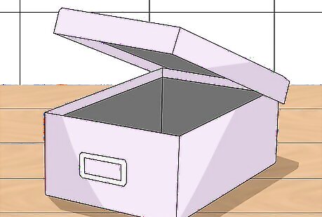 Put your remaining photos into boxes. These are where the bulk of your photos will most likely go. The photos that you choose to store in boxes are those that you don’t want to part with, but can be stored somewhere out of the way for infrequent viewing.