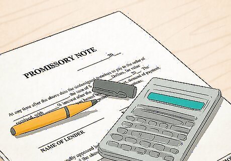 Draft a promissory note. The seller also needs the buyer to sign a promissory note or other financial instrument. Your lawyer can draft this document for you. It should contain the following information: borrower’s name property address amount of the loan interest rate repayment schedule terms for late or missed payments consequences of default