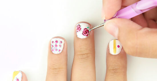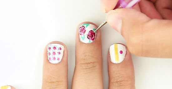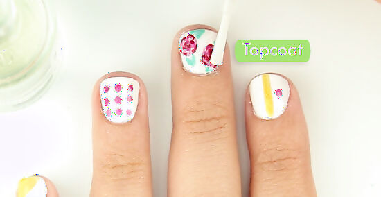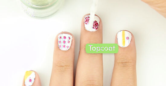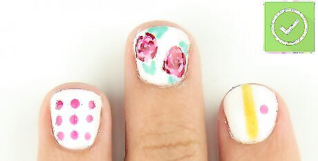 Finish off with a layer of top coat. When your design is finished, let it dry for a few minutes. You should dry it just enough that it does not smear easily. Top off the designed with a single layer of top coat. This will help your roses stay intact longer.