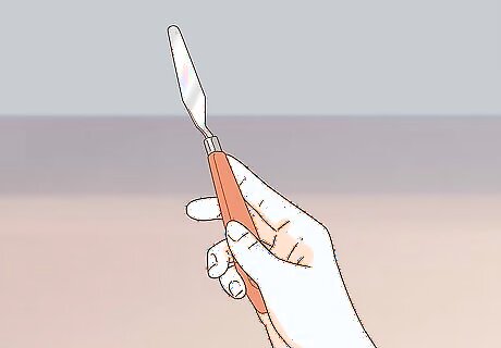 Angle the knife on the canvas to create different textures. Use the flat base of the knife to drag color flat across the canvas. Try pushing paint at a 45-degree angle for more texture. Flick the knife upwards at the end of the gesture to create a 3-dimensional peak. Or you can twist the knife in an undulating wave gesture to create irregular textures.