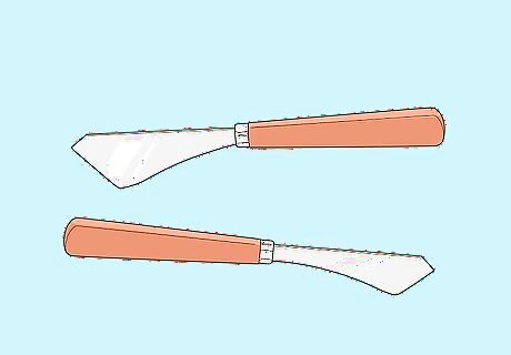 Opt for a knife with a sturdy metal blade and wood handle. With a springy and flexible metal blade, you'll be able to easily manipulate the paint on your canvas. The blade on a painting knife should be dull since you'll be using it to spread, mix, and apply paint. You don't need to look for a sharp blade since it's not meant to be a cutting tool. Plastic palette knives and painting knives are also available. While they might seem like a good choice for a beginner, they are less flexible, less durable, and harder to clean. A plastic knife can be purchased for as low as 1 USD while many metal knives cost around 10 USD or less. A versatile metal tool is well worth the investment.