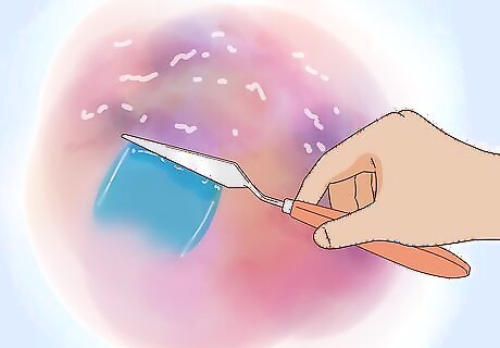 Drag blotches of wet paint to dry areas using the scumbling technique. This is similar to the sgraffito technique, but instead of removing paint you'll be adding it. Keep the knife at a 45-degree angle and push wet paint onto an area of dry paint. You can use the long side of the blade to move more paint, or just the tip to create finer details.