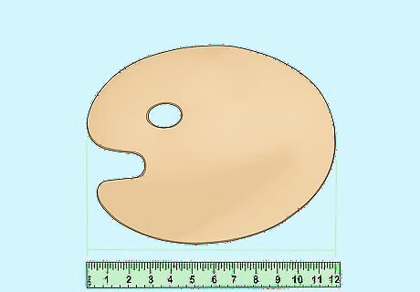 Use a large rigid plastic or wooden paint palette. Choose a rectangular or ovular palette with a smooth, flat surface. It can have a hole for your thumb to go through, or a lidded storage case, but these aren't necessary features. A palette measuring about 11 or 12 in (28 or 30 cm) long will provide enough space to mix and manipulate your paints. Waxed palette paper and loose plastic wrap will shift around with the pressure and movement of your palette knife. Instead of using these materials on their own, try taping a single sheet securely onto a sturdy palette for easier cleanup.