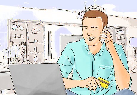 Pay bills over the internet. On the day that the bill is due, or a few days before, log into your online account and follow the step-by-step instructions on how to pay your bill. Some companies will offer to store your payment information so you don’t have to get out your debit/credit card each time you pay the bill. Avoid paying bills in a place such as an internet cafe. These connections are not always secure, and you run the risk of getting your computer hacked. If you can’t find a place where the connection will be secure, then it is best to just call and pay your bill over the phone.