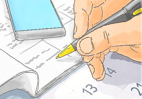 Mark on a calendar when they must be paid by. You can also simply write the due date on your list, but marking it on a calendar will give you a visual of when each bill must be paid by. You can also make notes about how the bill will be taken care of directly on the calendar. If you will be away for several months, marking the bill on the calendar will also help you identify how many months in advance you need to pay or how many signed checks you will need to give to a friend.