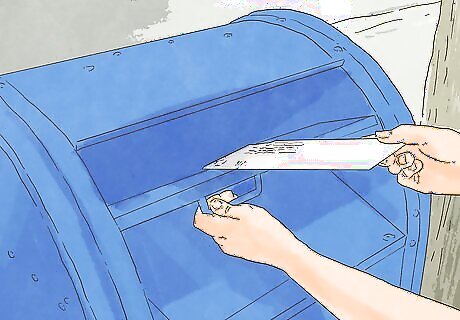 Supply them with stamped and addressed envelopes. In some cases, your friend may need to mail a check along with a payment voucher. Don’t expect your friend to foot the bill for postage. In addition to the stamp, you can also write the name and address of the recipient on the envelope so they don’t have to worry about it. You can even take this a step further by providing everything your friend/family will need to mail inside the envelope. For example, if you have a payment slip that has to be included, fill it out with as much information as you can and insert it in the envelope along with a signed check. If you will be away for many months you can even write the month that the envelope is for somewhere inconspicuous on the envelope. For example, if your friend will need to send off a check each month from January to July then provide them with 7 stamped and addressed envelopes. On each envelope, write the month that it is for.