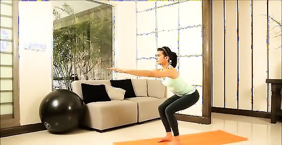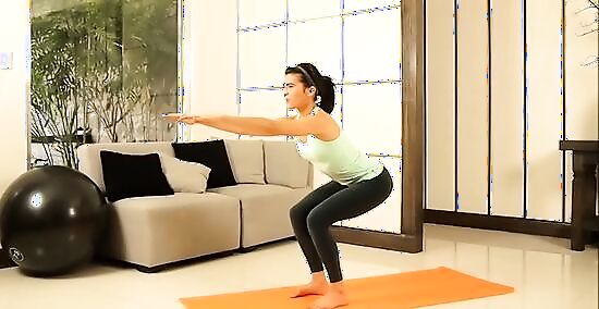 Bend your knees and squat. Act like you are sitting in a chair. Your center of balance should be above your heels your heels should touch the ground. Keep your legs in that position and take care not to move your hips lower than the level of your knees.