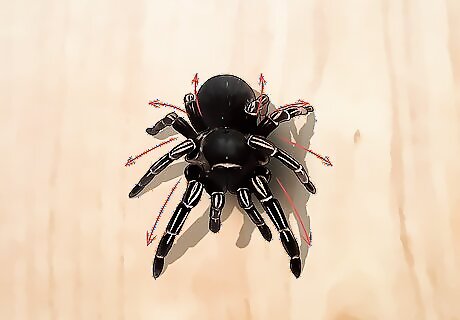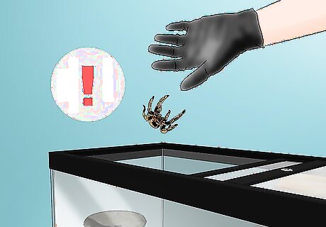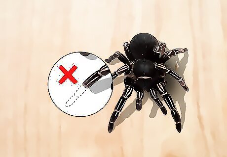 Leave your tarantula in its habitat. Tarantulas are extremely delicate. Tarantulas can be very unpredictable and a drop from a few inches can rupture the abdomen and your tarantula will suffer a slow, painful death. Although there may be some instances where you need to pick up your pet spider, regularly holding a tarantula is not recommended. If you have to hold the spider, let it rest on both of your hands. Try not to cup your hands too much, but keep them flat. Also do not prod your tarantula. Certain areas of their bodies are extremely delicate. If you touch them, your tarantula may become aggressive in a matter of seconds. If your tarantula feels threatened, it may flick hairs at you. These are called "urticating" hairs and will cause severe irritation on contact with your skin. Many, but not all, breeds of tarantula have urticating hairs.