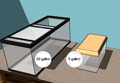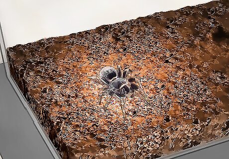 Determine the terrarium size for your tarantula. If you purchase your tarantula as a baby (spiderling), it can live for months in a medium-sized pill bottle or a small deli cup. Usually, if you buy a tarantula from an online dealer, they will send it in a little vial. You can keep the spider/spiderling in that vial until it reaches a molt that will make it too big for the container. Species like the Common Pink Toe (Avicularia Avicularia), Costa Rican Stripe Knee (Aphonopelma Seemanni), Chilean Rose (Grammostola Rosea), Curly Hair (Brachypelma Albopilosum), Mexican Redknee (Brachypelma Smithi), Cobalt Blue (Haplopelma Lividum), and Usambara Orange Baboon (Pterinochilus sp.) will all fit well into a 5 gallon (18.9 L) terrarium when fully grown. Some species like The Goliath Birdeater (Theraphosa Blondi) can have up to a 12-inch (30.5 cm) leg span. It will need a significantly larger tank of 20–40 gallons (75.7–151.4 L).