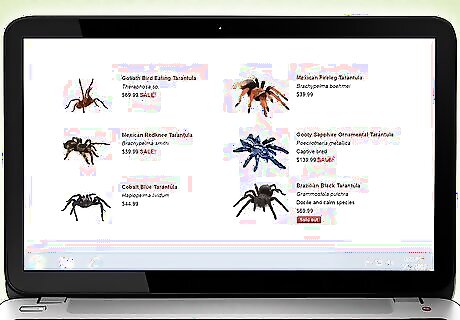 Research the cost of a tarantula before you buy one. The cost of tarantulas can widely vary based on age, breed, size, and rarity. Spiderlings are much less expensive than a fully grown tarantula. You may want to start with a less expensive species while you are learning, then move to a more expensive one. It's easier to take the loss of a $20 Pink Toe than it is a $300 Ecuadorian Birdeater Tarantula. Different stores often have different prices for the same species of tarantula. If you have the time, shop around before purchasing a tarantula.