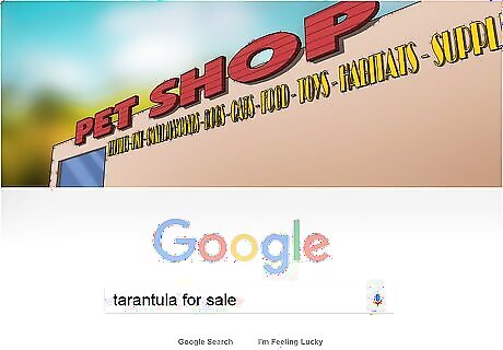 Find a reputable tarantula dealer. Many pet stores sell tarantulas and have great experience caring for them. If your local pet store has just 3 or 4 tarantulas and the sales staff are not knowledgeable about arachnids, then you might want to look for a different store with a bit more experience (unless you're experienced and want to rescue a neglected tarantula or educate the pet store). Tarantulas are also available from online dealers, if you can't find a local dealer with what you want. They are normally shipped as young spiderlings and are normally captive bred.