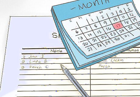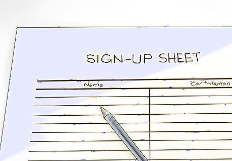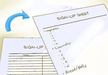 Post signs around the office with the date and time. Also instruct people to a specific location to sign up to bring certain dishes. Place the sign up sheet in a central location where people will see it every day.