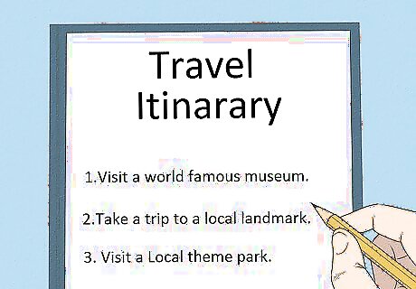 Keep your itinerary under control. Sometimes the goals that you set for yourself on vacation can stress you out and cause you to enjoy the trip less. This may include things like punishing itineraries where you try to see and do more than is realistic in one day. To minimize this stress, make sure that you do not overload your itinerary. For example, you might set a goal to do one of the activities on your list each day, such as visit a world famous museum or take a trip to a local landmark. However, planning to do four or five of the things on your list in one day may be overwhelming, which could make the activities much less enjoyable.