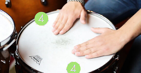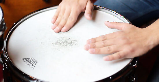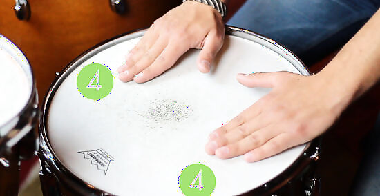 Learn how to subdivide beats and rests through practice with just the snare drum. Your goal is to be able to make even sounds with both hands. When you play an accented note with the right hand it should sound the same when you play with the left and when you make a normal stroke with the right it will sound the same as the left and vice versa and so on. An accented stroke is when you strike the drum harder than the other strokes (usually on the rim of the drum, also known as a rimshot). Accents give a very dynamic effect to the music. In music notation, accents are shown by the mathematical "greater than" sign (>).