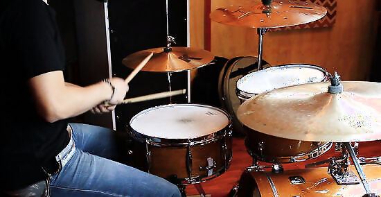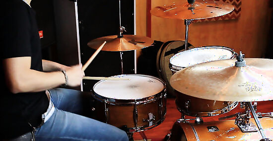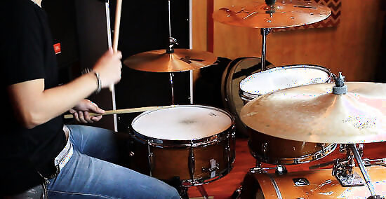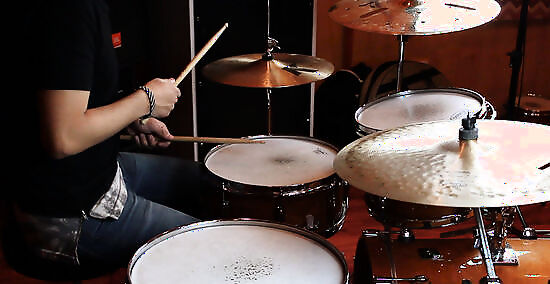 Learn the different kinds of cymbals. There are many different kinds of cymbals, varying in type, shape, and sound. A cymbal is a round, metal object that resonates when struck. The four most commonly used types of cymbals are the hi-hat, the ride, the splash, and the crash. The hi-hat is a pair of cymbals mounted on a foot pedal. The foot pedal is usually played by the left foot and controls the cymbals, bringing them together when pressed and bringing them apart when released. You can strike the cymbal when it is apart or closed, and you can shut the cymbals with your feet at different rates of speed, each creating a different sound. The ride cymbal creates a more subtle and deeper sound than the other cymbals because it is used to play very repetitively throughout most music. The cymbal will usually resonate from one strike to another, featuring a very long reverberating "finish" to the sound. The splash is a cymbal that creates a metallic "splashing" sound, similar to the sound a water splash makes. It dies quickly after peaking and is typically used in basic fills to ornament your beat. The crash is similar to the splash, but usually generates a loud and long, sustained sound. Listen for the crash at the end of measures in pop music or especially in periods of heightened drama in orchestral music.