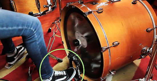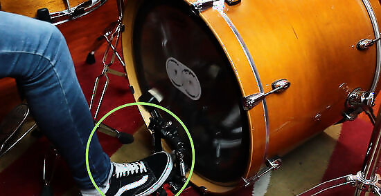 Try to play the kick drum with the right foot. Experiment with various beats with the right foot while keeping the rest of the limbs locked in the main pattern. This is where it starts to get tricky. Don't worry though, it gets easier the more you play. You have to get your limbs used to making movements that are independent of each other. There is no quick way to do this. Just take your time and think about what you are doing. If you break it down into one beat at a time it makes things a lot easier.