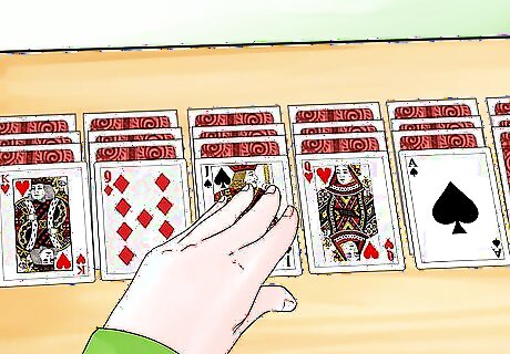 Flip over the top card on each pile. Expose the first card on each of the 10 piles. These cards are what you'll use to begin the game.
