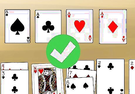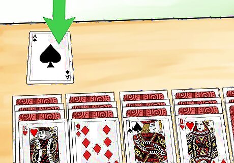 Place aces in the foundation row. Leave a space above the tableau to store the aces. For now, move any aces exposed on the tableau. When you start drawing from the stock pile, add any aces you get. Place each ace side by side to form 8 separate piles.