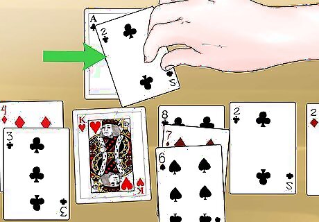 Draw cards from the stock pile when you're out of moves. In addition to the tableau cards, your other main playing option is the stock pile. When you have no more moves left on the tableau, pick up the top card on the stock pile. Each time you draw a card, it can be placed on the tableau, foundation, or waste pile. If you draw an ace, move it to the foundation. Otherwise, you may add it to a foundation pile if it is matches the suit and is one number higher than the card beneath it.