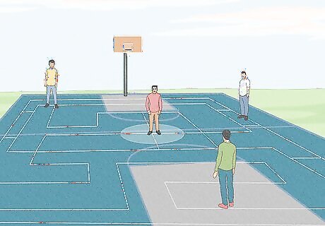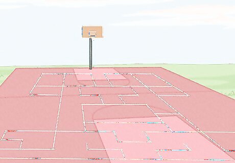 Choose a spot to play. Find a huge area of land that is used for recreational purposes. It would be better if it has lines or circles all over it e.g. a basketball court. Make sure there isn't anyone there and it is a surface where you can draw things on it with chalks or a rock. The bigger the space, the better. When using a public place, always ask for permission first!