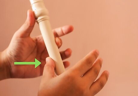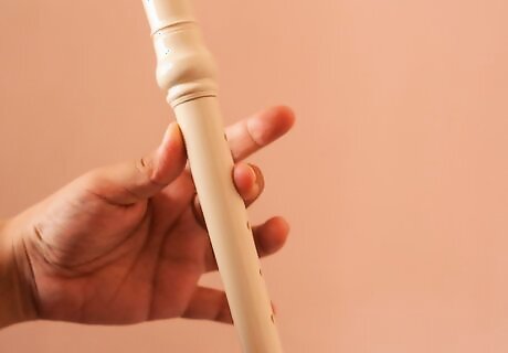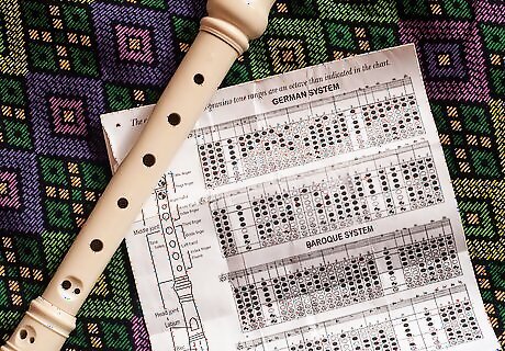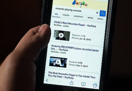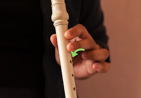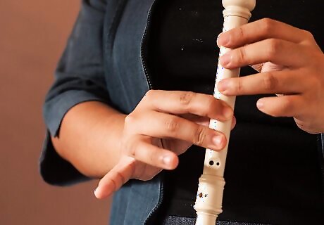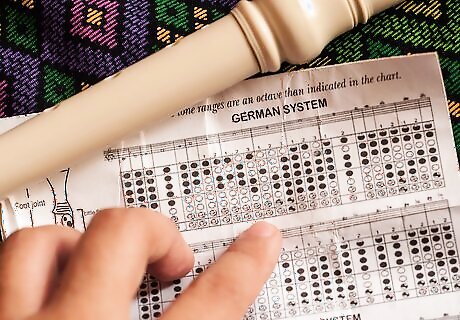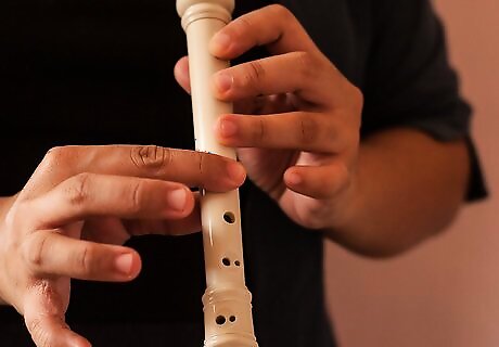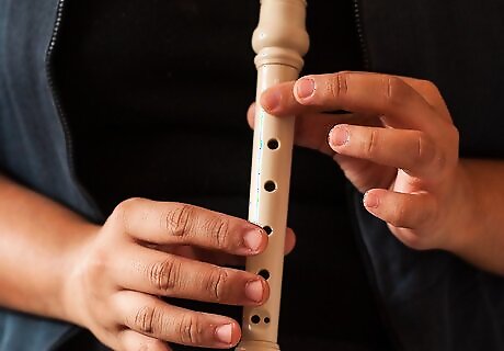 Start with note B. This one is the most simple note. Simply use your left hand thumb to cover the hole on the back of your recorder and cover the first note in front with your pointer finger. Check for any part of the two holes uncovered, and blow. The note should be high, but not extremely high that it squeaks. If it does, cover the holes again and try again.