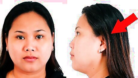 Both ears showing or both edges of the face visible if hair covers the ears